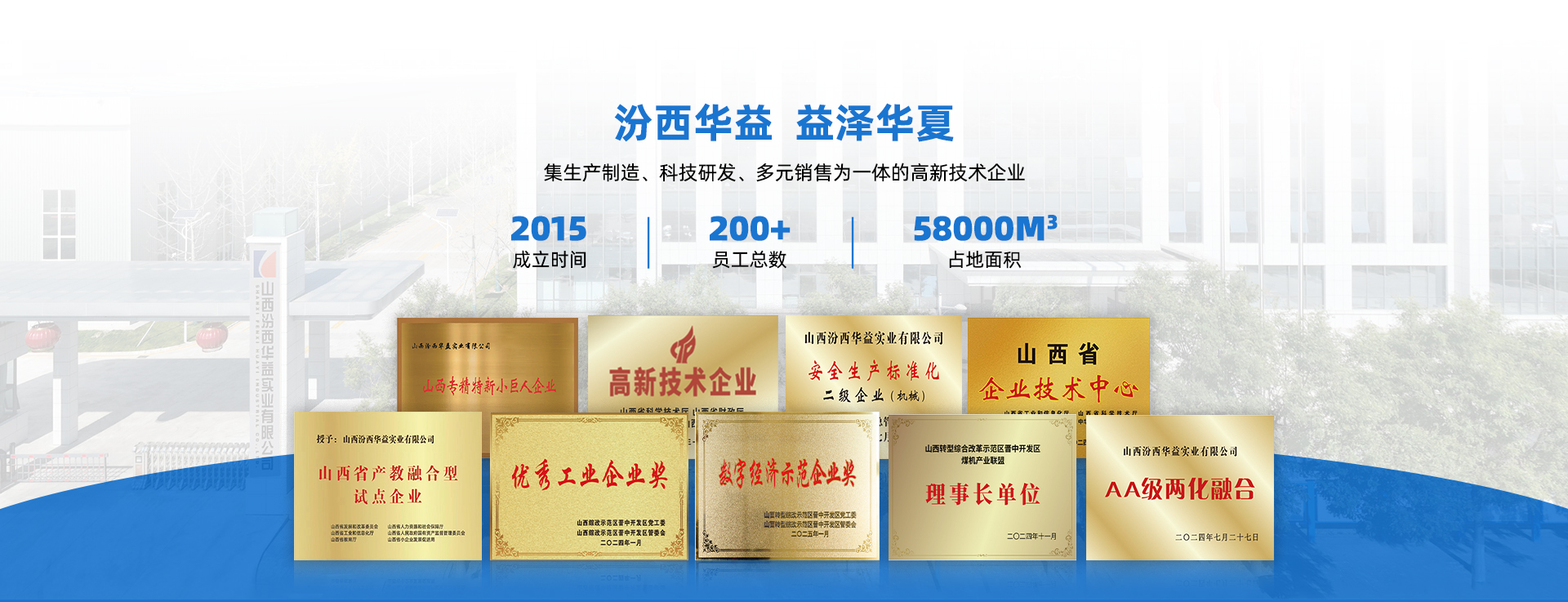 +山西汾西華益實(shí)業(yè)有限公司成立于2015年,注冊(cè)資金1億元,地處山西省晉中市山西轉(zhuǎn)型綜改示范區(qū)晉中開(kāi)發(fā)區(qū),占地面積約58000平方米,為山西焦煤汾西礦業(yè)集團(tuán)的控股子公司,是一家集生產(chǎn)制造、科技研發(fā)、多元銷(xiāo)售為一體的高新技術(shù)企業(yè)。